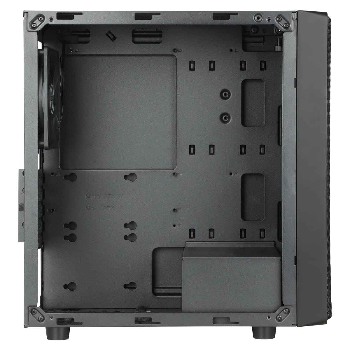 De Abkoncore Cronos 350M computer buizing is een zwarte behuizing met een acryl doorzichtig zijpaneel. aan de voorzijde van de abkoncore Cronos 350M zijn 2 120mm ventilatoren geplaatst dat zorgt i.c.m. de 120mm ventilator aan de achterzijde voor een prima koeling. De behuizing biedt plaats aan zowel micro-ATX als Mini-ITX moederborden.
